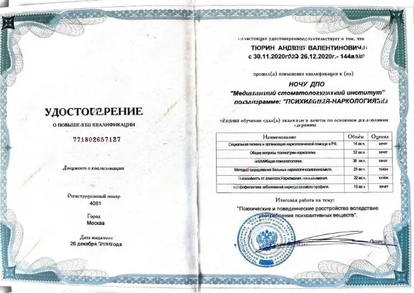Тюрин Андрей Валентинович разработал и успешно внедрил программу интенсивной терапии для пациентов с хроническими зависимостями, которая включает в себя психотерапевтические методики и индивидуальный план медикаментозного лечения. Его программа значительно повысила эффективность лечения пациентов с длительным стажем зависимости, обеспечивая улучшение качества жизни и стабильную ремиссию.